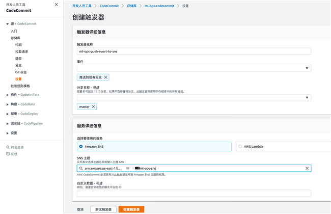 Amazon CodeCommit Trigger插件需要通过SQS与SNS来实现webhook的功能(即push代码到CodeCommit之后,触发Jenkins Pipeline),因此需要先对SQS与SNS进行配置。