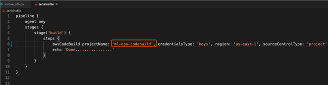(2)打开Jenkinsfile,将your_project_name替换为你的CodeBuild项目名称,从代码中可以看出,Jenkins安装完成Amazon CodeBuild插件之后,就可以以常见的Groovy语法定义需要执行的step,触发Amazon CodeBuild执行相应的构建编译的过程,因此,Jenkins在这里只起到调度的作用,编译构建的负载全部交给Amazon CodeBuild来完成,用户并不需要预置底层资源;