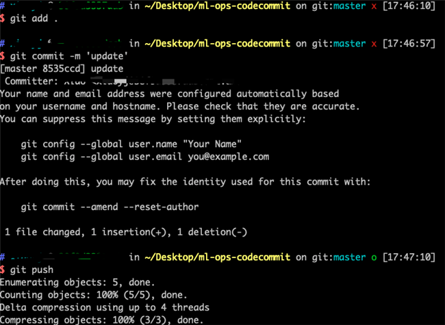 (5)从github上下载实验所需代码到本地,并上传到CodeCommit的代码仓库;