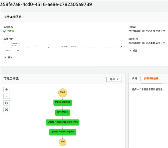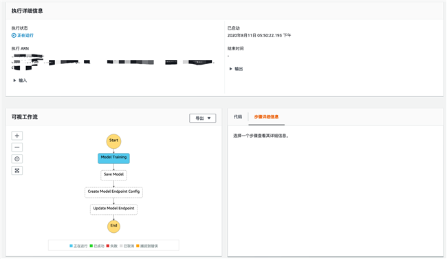 (3)触发Amazon Step Functions执行Amazon SageMaker训练与部署的步骤;
