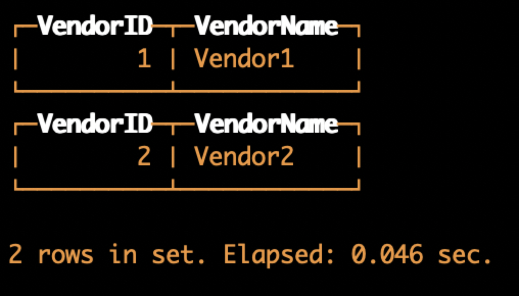 ORDER BY VendorID
