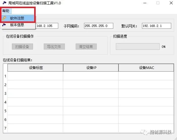 3. 本软件工具是局域网在线监控设备扫描工具,需要把电脑IP 地址
