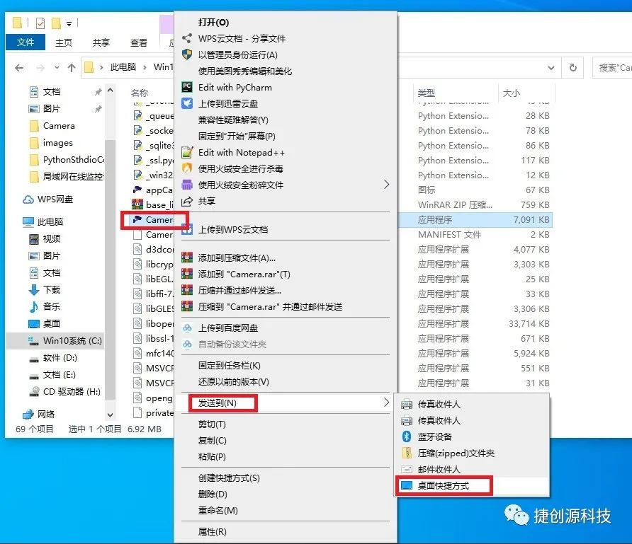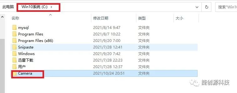 1.把软件文件夹内的“Camera”压缩包解压到系统C 盘。如下图把
