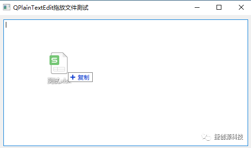 六、运行测试,拖放excel文件如下图:QPlainTextEdit已支持拖放excel文件。