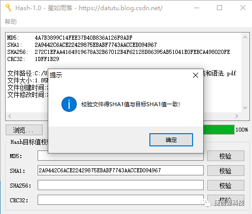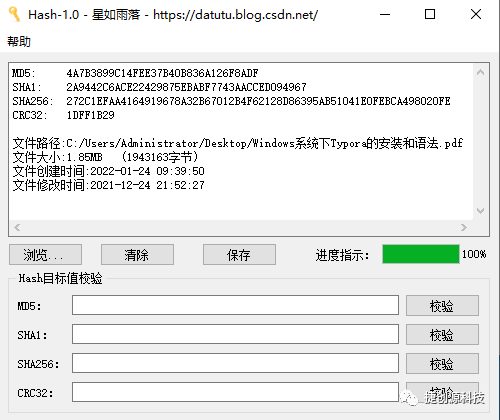 号主强烈推荐这款文件Hash校验工具,不仅能够计算出文件Hash信息,而且还有Hash目标值校验功能,省去人工比对的繁琐,操作简单,使用方便!