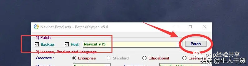 2、首次打开默认勾选的Backup和Host以及选中的Navicatv15,点击“Patch”