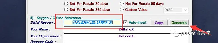 粘贴进去后,点击最下方Activation Code的Generate(生成)按钮,将激活码复制到Navicat激活码框中。