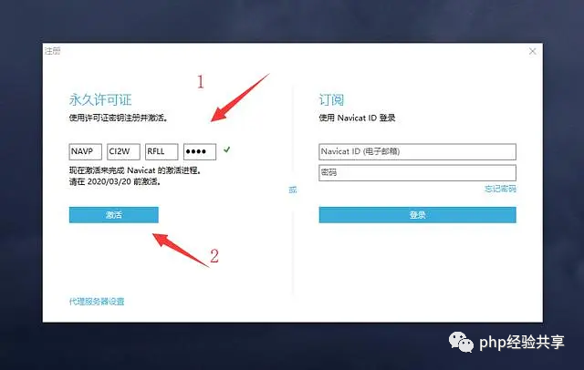 关注微信公众号:php经验共享,公众号内回复关键词:navicat