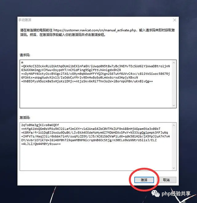 在微信公众号:php经验共享,私信回复:navicat 获取最新版注册机(实时更新)