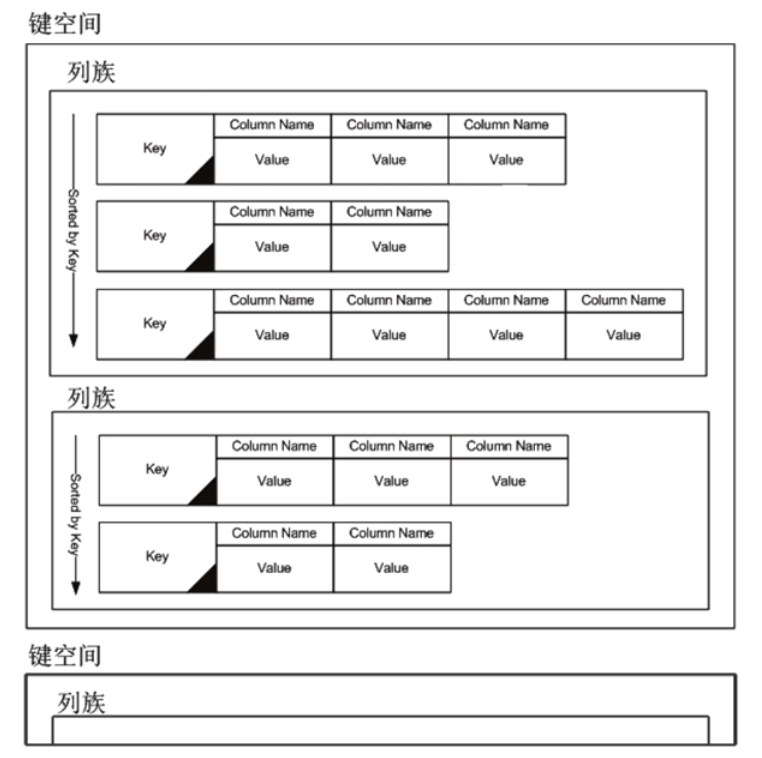 图 3 键空间、列族、行、列的关系