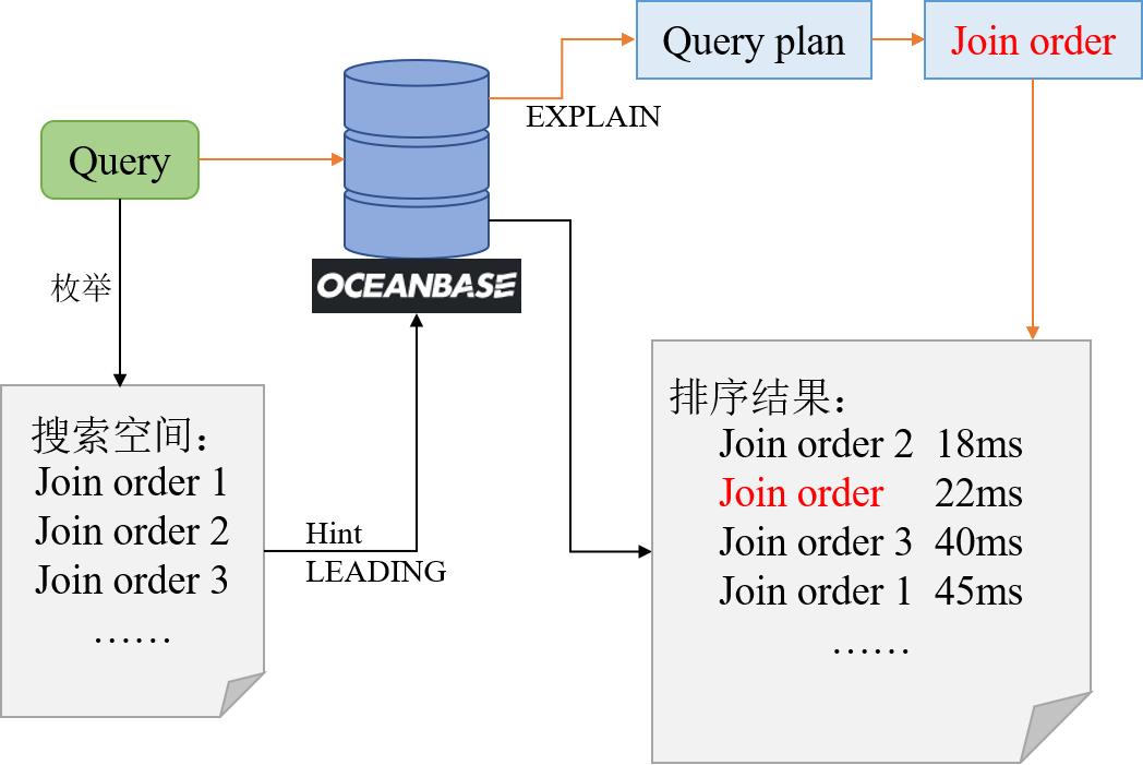 对于每一个查询,我们枚举它所有可能的连接顺序,并利用hint关键字LEADING,强制OceanBase以特定连接顺序执行查询。