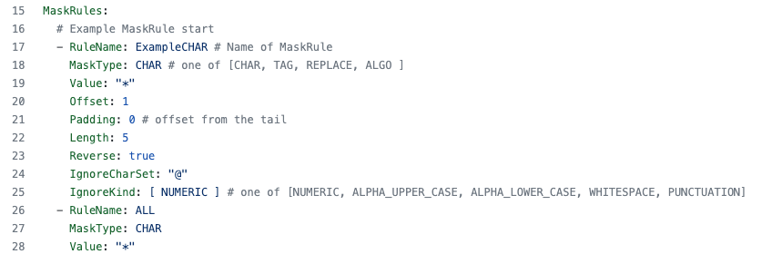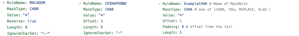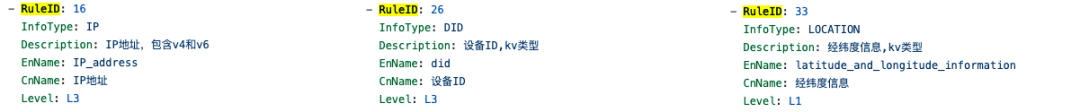 业务自定义配置选项 除默认的敏感信息识别和处理规则外,业务可根据实际情况,配置自定义的 YAML 规则,GoDLP 能够根据传入的配置选项,完成相应的数据处理任务。