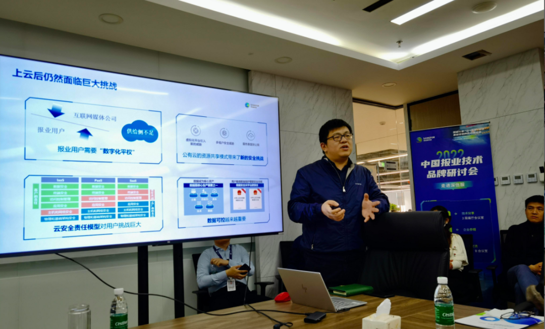 研讨会开端,深信服北京区解决方案主管郭洋就如何安全、有效地支持报业用户数字化、服务化转型工作展开分享。