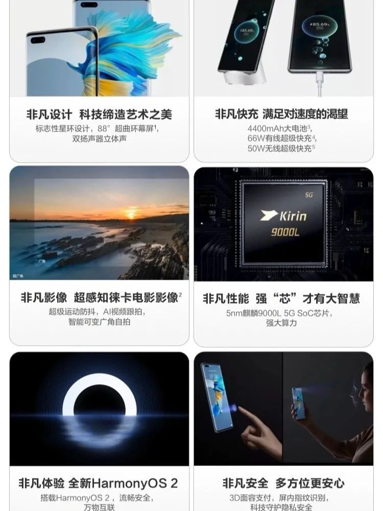 至于其他配置方面,华为 Mate40E Pro 搭载 5000 万像素超感知后置三摄、6.76 英寸超曲环幕屏、4400mAh 大电池和 66W 快充等。