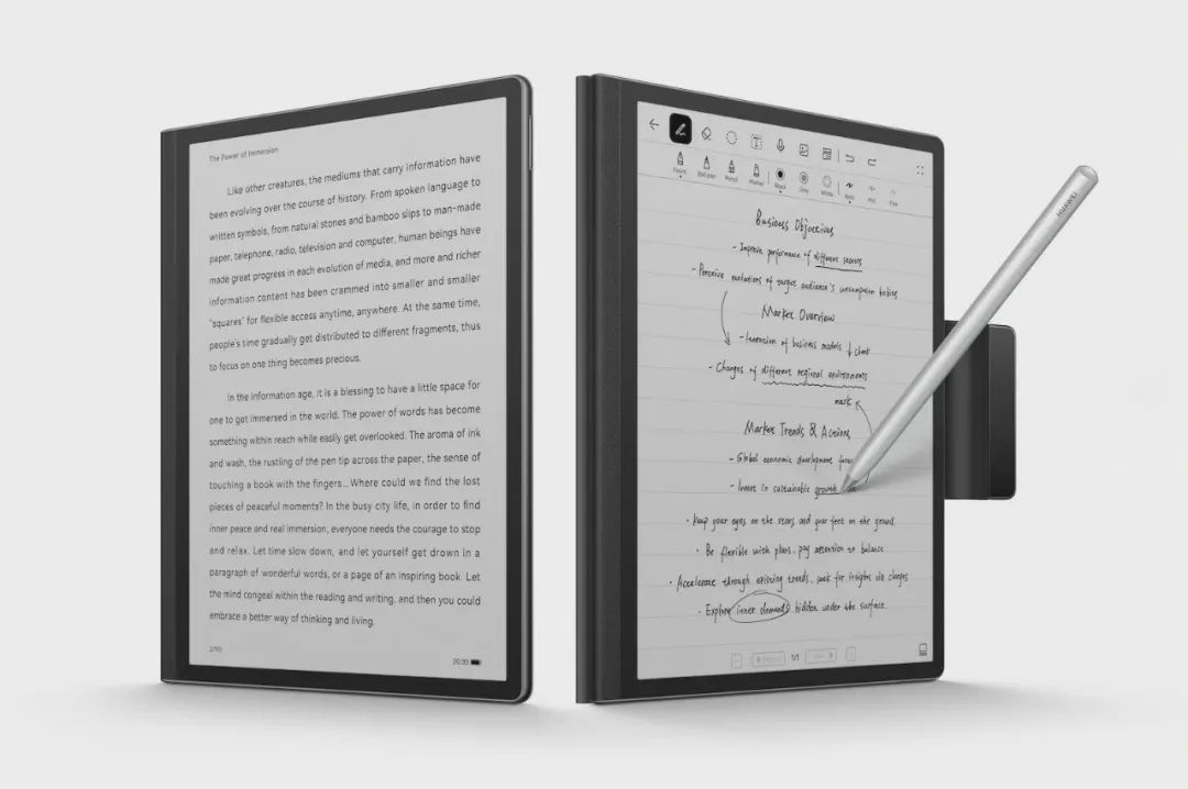 目前国内外厂商做的水墨屏,大多是类似 Kindle 的电子书,功能以看为主,而华为这个更突出办公属性,比如内容流转、PDF 注释、手写笔记等功能。相信在鸿蒙生态的加持下,比传统的水墨屏会有更好的体验。