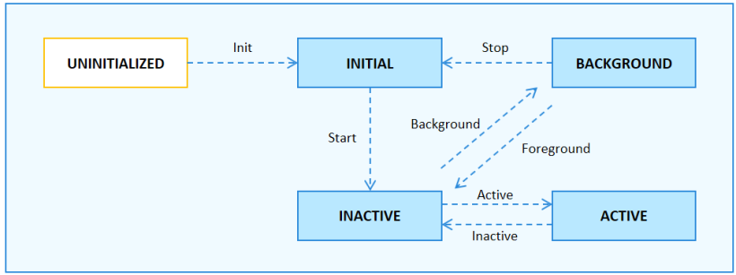 初始化完成后, 会调用 onStart() 方法,初始化 UI 界面中使用到的控件和变量, 执行完毕后状态变为 INACTIVE 状态