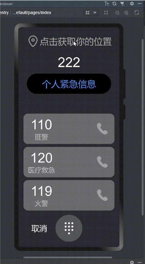 该组件主要用来渲染紧急拨号列表,在 ArkUI 中,主要使用 forEach 来遍历数据,进行页面展示。