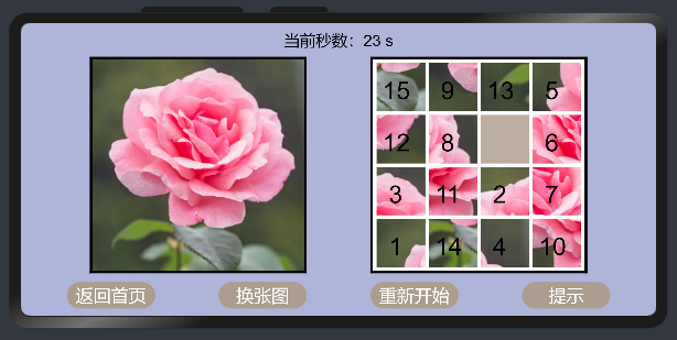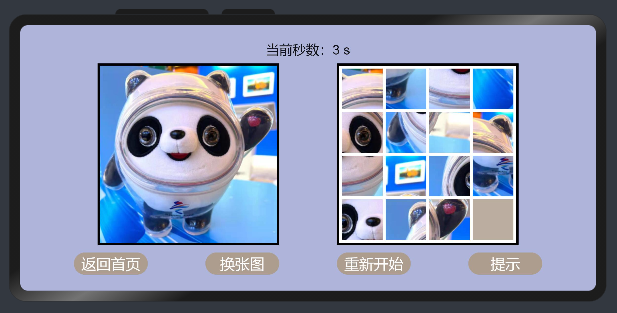 底部功能按钮:分别用于返回首页,切换图片,重新开始和开关提示。