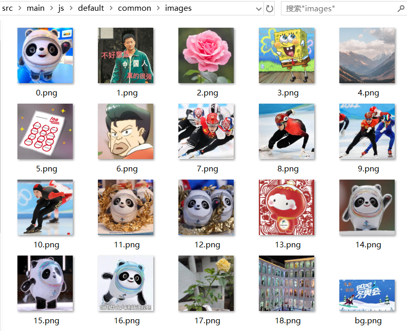 图片导入:尺寸要求(360×360 像素),将图片放入 images 文件夹,并在 list.js 中录入图片信息。