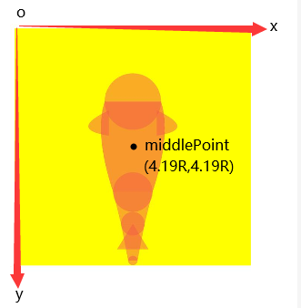 因此我们画布的半径需要拓展成小鱼身中心到小鱼尾的长度,整个画布的大小=4.19R*4.19R,如下: