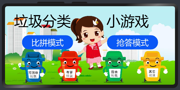 垃圾可以分为四大类:可回收垃圾、厨余垃圾、有害垃圾、其他垃圾。垃圾图片随机出现,玩家点击对应的分类图标进行归类,得分高者获胜。