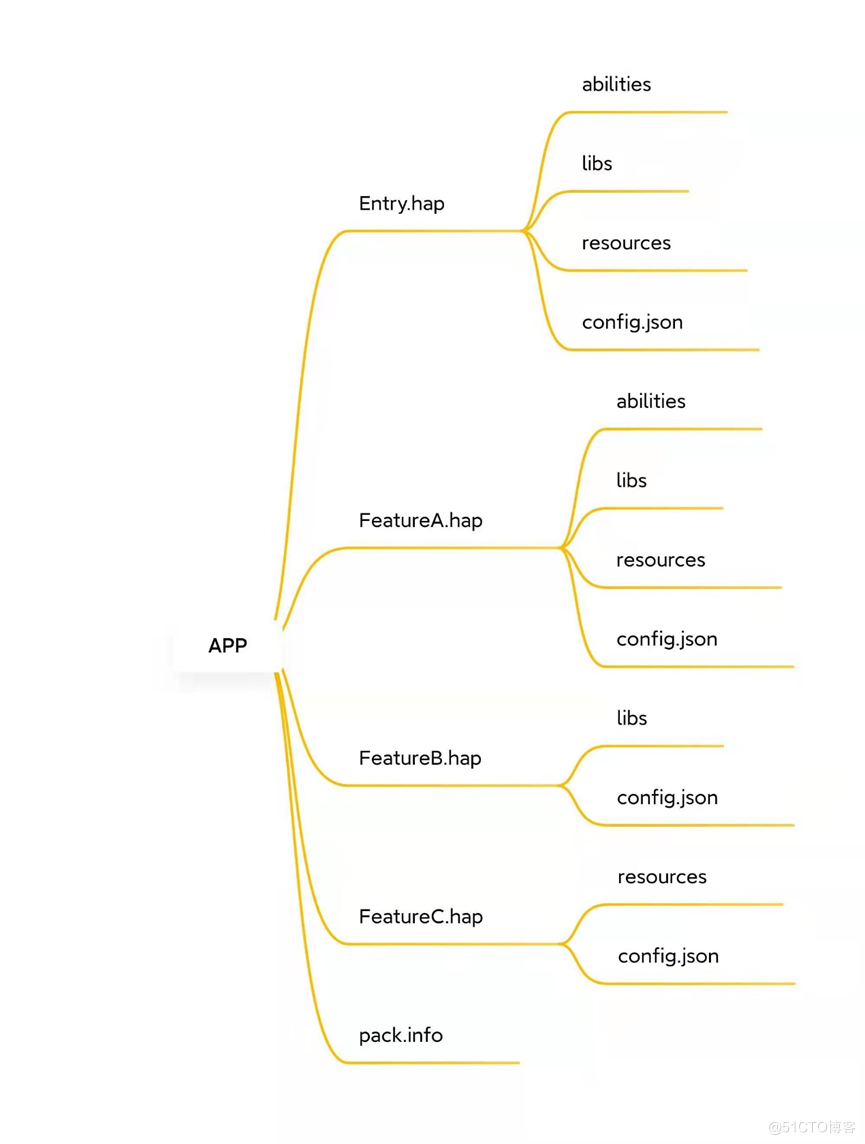 值得一提的是:一个 APP 中可以包含多个 HAP,但必须含有 Entry.HAP;一个 APP 可包含多个 Feature.HAP,也可以不包含 Feature.HAP。