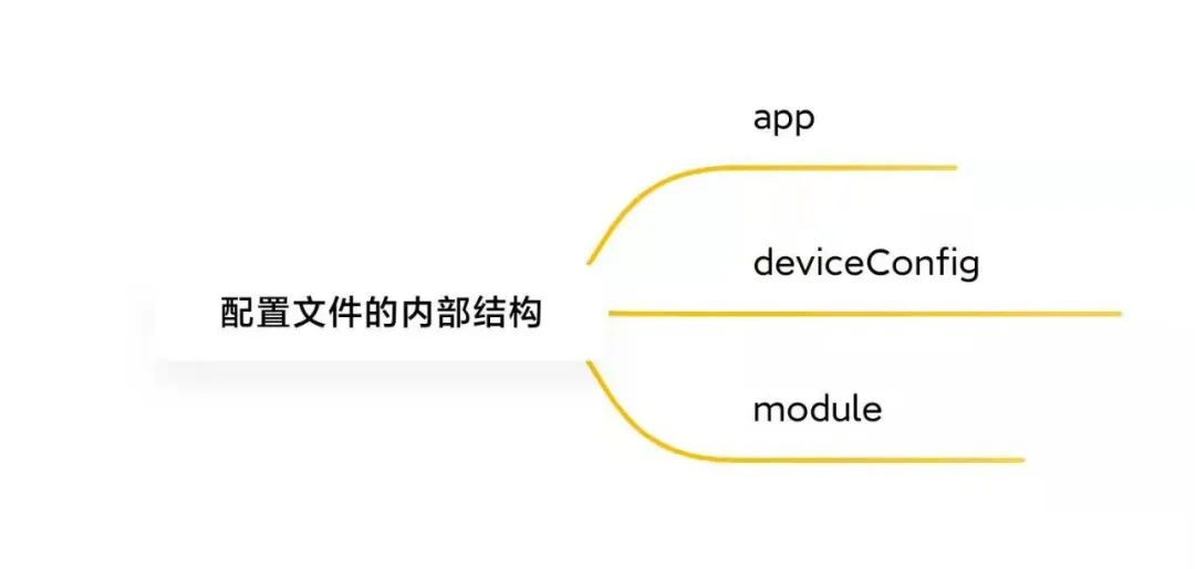 配置文件的内部结构由 app,,deviceConfig 和 module 三部分构成,缺一不可。