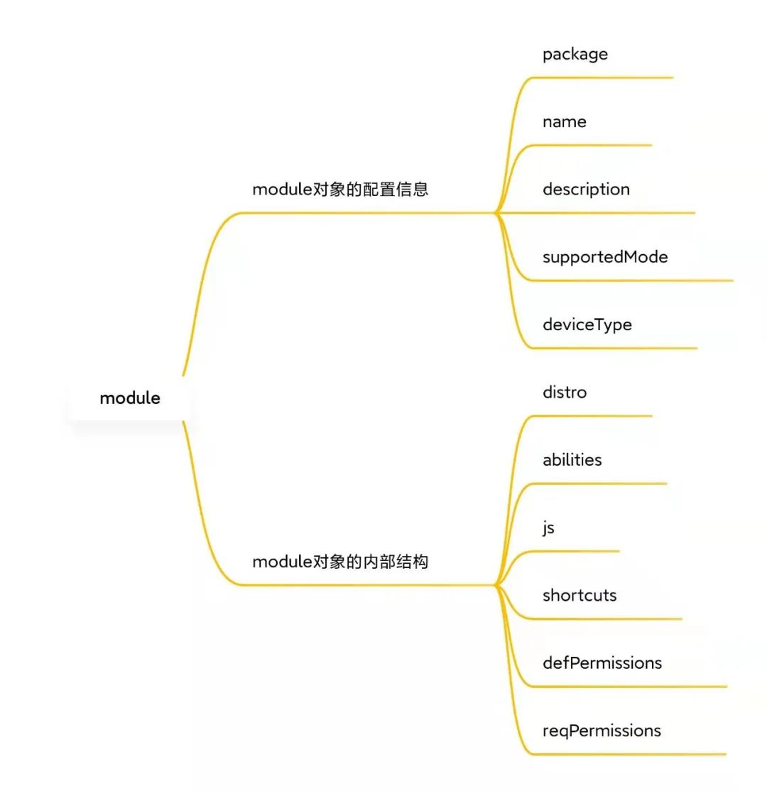 module 对象的内部结构主要由 distro,ablilties,js,shortcuts,defPermissions 和 reqPermissions 共六个元素组成。