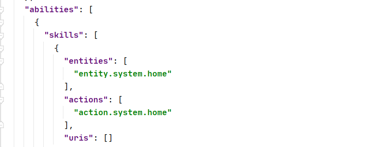 其中,description 表示对 Ability 的描述,icon 表示 Ability 图标资源文件的索引;label 表示 Ability 对用户显示的名称;uri 表示 Ability 的统一资源标识符(对于 data 类型的 Ability 则不可缺省 uri)。
