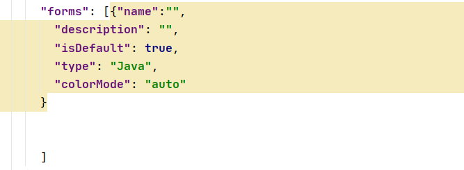 forms 对象的内部结构由 name,description,isDefault,type 和 colorMode 五个属性组成。