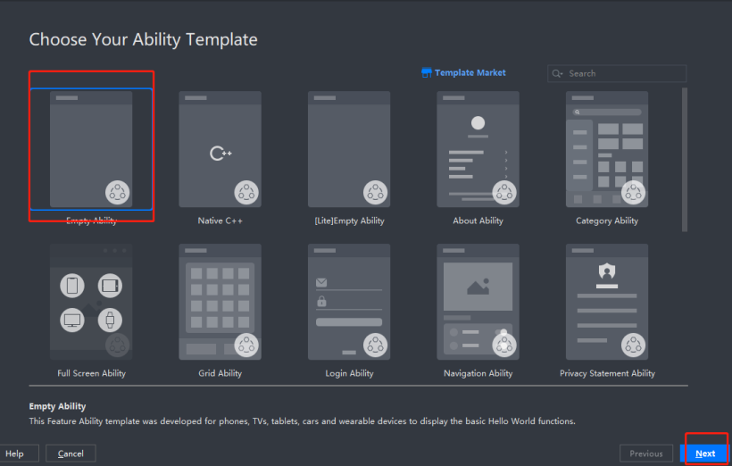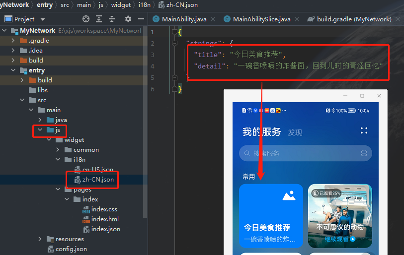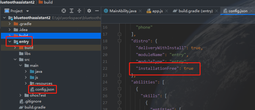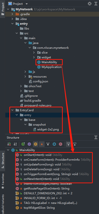 如果创建项目时,勾选了 show in service center,则可以在 entry module 中的 MainAbility 类中看到重写的相关接口。
