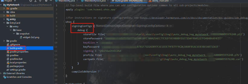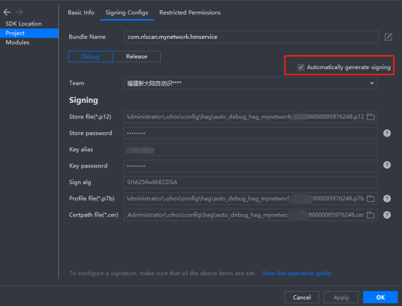 生成环境下的签名与认证的申请可以参看:申请发布证书,将申请到的数字认证和 Profile 文件配置到本地的 release 环境。