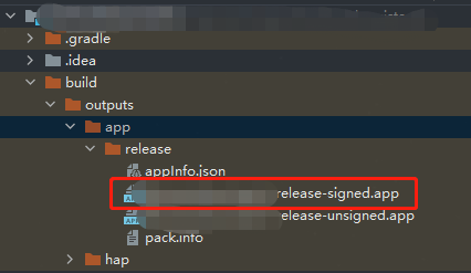 构建成功后可以在项目的 build->outputs->app->release->xxxx-release-signed.app。