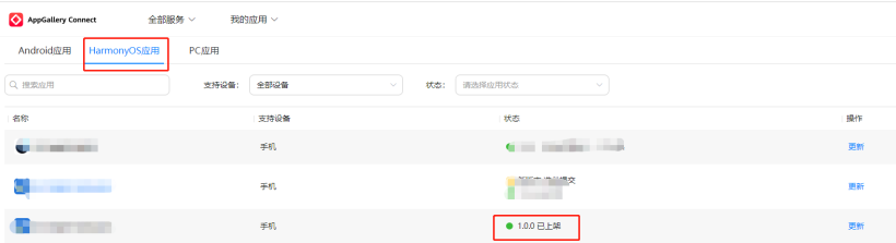 发布应用:将已认证签名的 app 包上传到 AGC(AppGallery Connect)平台,并且通过审核,发布成功。