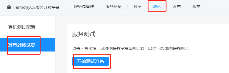 服务提测:在“测试”菜单中,点击“开始测试发布”。