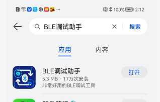 步骤 1:在华为应用市场搜索“BLE调试助手”,下载并安装成功。