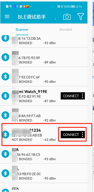 步骤 3:尝试连接配对,点击“CONNECT”后,连接成功会提示用户,当然你也可以进行断开连接。