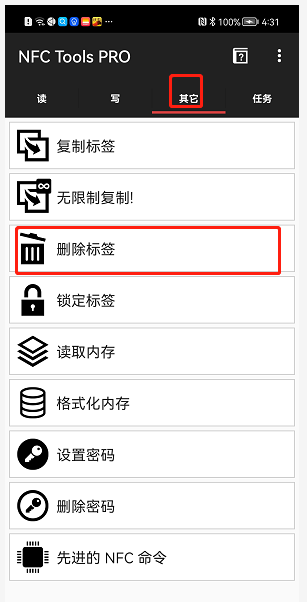 写入时需关闭手机网络;选用空白的 NFC 标签进行写入,如果 NFC 标签中已经写入数据,可以通过 NFC Tools PRO 工具删除标签内容,请看本文第三部分:删除NFC标签数据。