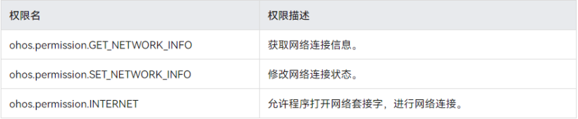 权限相关配置好后,接下来看一下鸿蒙开发官网上对于网络模块开发的接口说明。