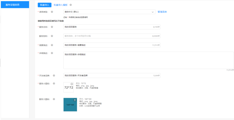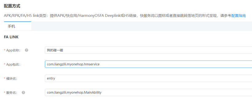 “服务名”填写为入口原子化服务(即设备配网模块)config.json 文件中的 mainAbility 字段取值。