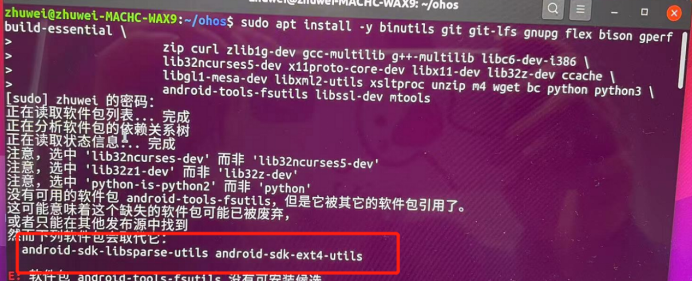 安装必要的依赖包:执行 sudo 的 apt update 命令,用来检查已安装的软件包是否有可用的更新;再执行 sudo 的 apt install -y 命令,用来下载安装后续需要使用的依赖包。