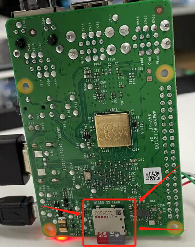 插入 SD 卡:将 SD 卡插入到树莓派开发板的 SD 卡槽中,正确插入后的效果如图 5 红框中所示。