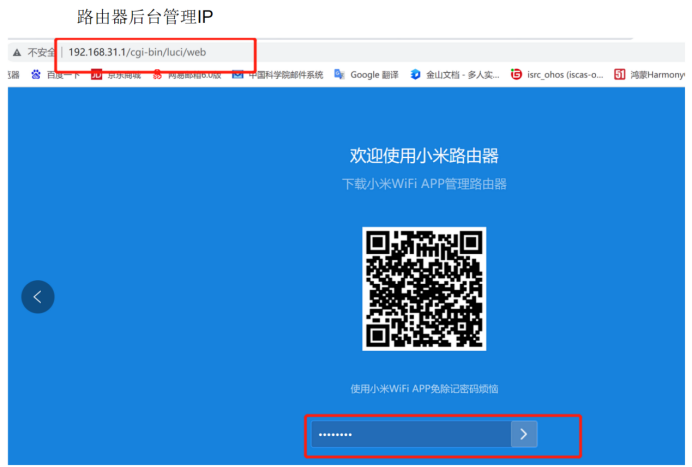 在浏览器中输入路由器的后台管理 IP 进入后台管理界面,输入密码进行登录,如图 15 中红框所示。