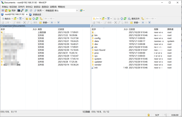 界面左侧表示主机文件系统,右侧表示 openharmony 3.0(即树莓派开发板)的文件系统,用户可以采用拖动的方式,实现在两台设备间相互文件传输的效果。