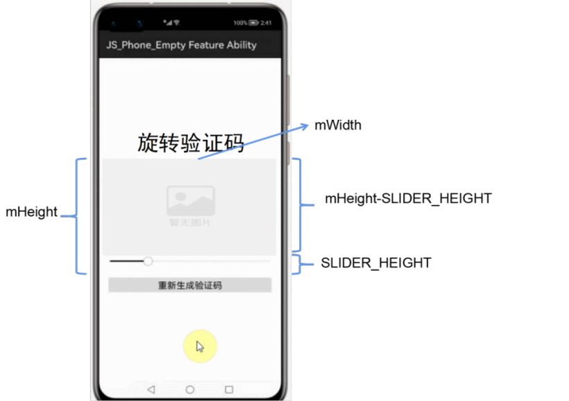 设置 Image 对象的宽为之前获取的屏幕宽度 mWidth,高为 mHeight-SLIDER_HEIGHT,即组件高减去拖动条高的差值。