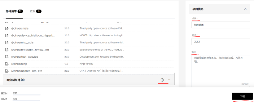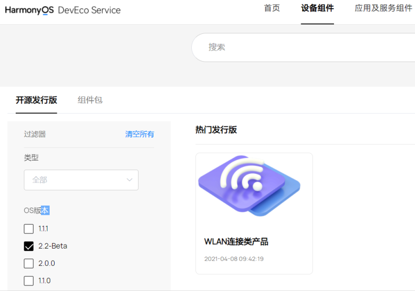 在“开源发行版”下选择版本,OS 版本选择“2.2-Beta”,内核选择“liteos-m”。