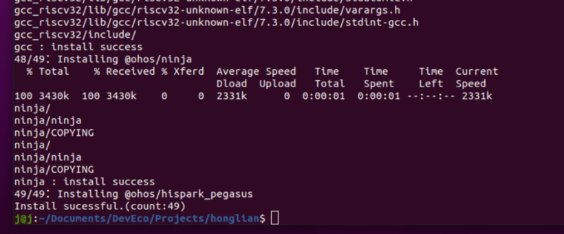 在 honglian 文件夹下打开命令终端,只需一行代码,开始生成发行版代码(保持网络正常)。