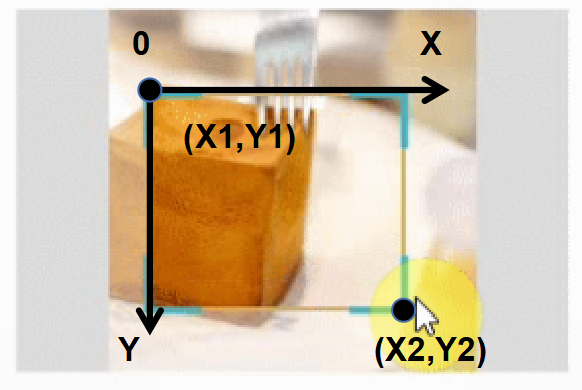 被选中区域的左上角和右下角坐标会在图片下方的文本框中进行显示;