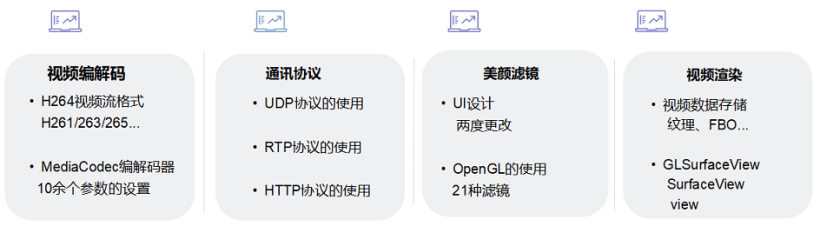 此应用包含 4 个功能模块,可参考图 3,分别是:视频编解码、通讯协议、美颜滤镜和视频渲染。