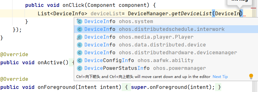 List<DeviceInfo> deviceList= DeviceManager.getDeviceList(ohos.distributedschedule.interwork.DeviceInfo.FLAG_GET_ONLINE_DEVICE);